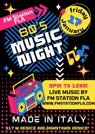 FM Station FLA brings the ultimate 80's music experience to SWFL with a high energy, crowd moving show that's as fun as it is nostalgic! More then just a band, FM Station delivers the soundtrack of a generation with a live vintage video show that transports audiences straight back to the neon decade!